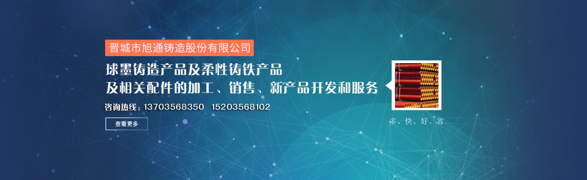 晉城市旭通鑄造股份有限公司是一家致力于球墨鑄造產(chǎn)品及柔性鑄鐵產(chǎn)品及相關(guān)配件的加工、銷(xiāo)售、新產(chǎn)品開(kāi)發(fā)和服務(wù)的網(wǎng)絡(luò)平臺(tái),以“多、快、好、省”為服務(wù)宗旨,多種選擇、快速定位、優(yōu)質(zhì)產(chǎn)品、省錢(qián)省力,為客戶提供精準(zhǔn)服務(wù)......